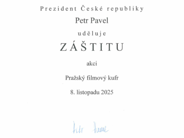 Je nám velkou ctí vám oznámit, že nad letošním ročníkem Pražského filmového kufru převzal záštitu prezident ...